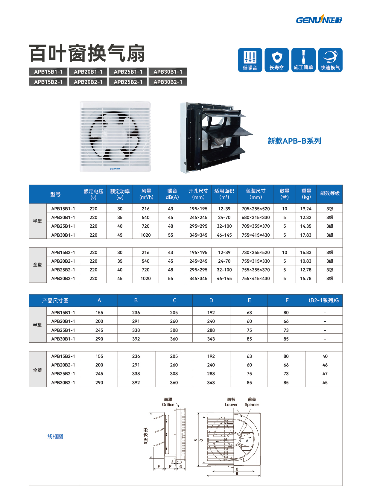 百叶换气扇(带网罩)APB(B1-1)半塑/APB(B2-1)全塑